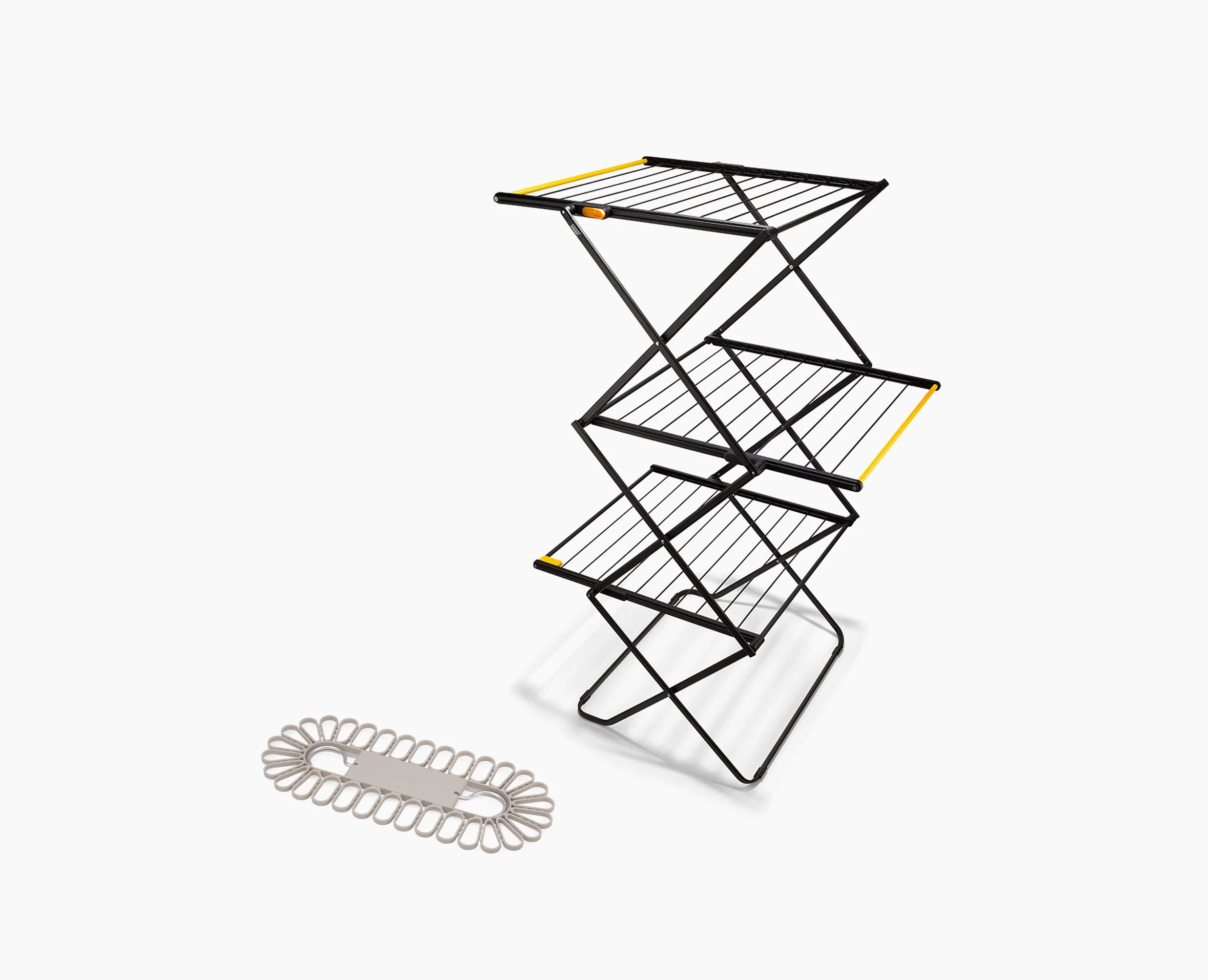 The clothes airer that doesn't get in your way. This compact clothes airer and drying hanger set offers generous space in a design that can be neatly folded away for storage. The included Petal™ drying hanger simplifies drying socks, underwear, and small garments.